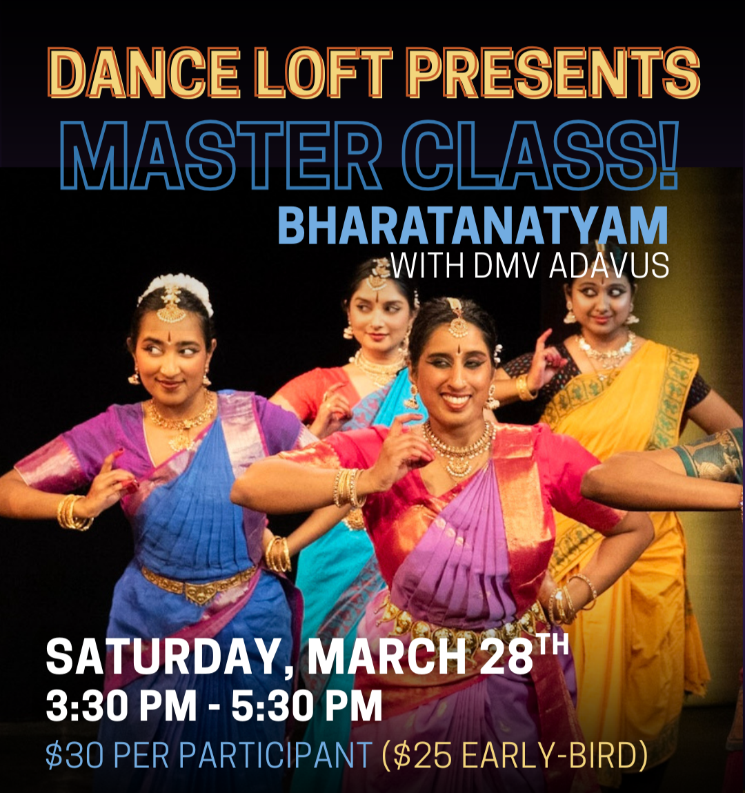 Join DMV Adavus for a Bharathantyam MASTERCLASS on March 28th from 3:30 - 5:30 PM.